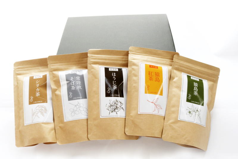 - 緑茶・紅茶・ほうじ茶・そば茶・シリカ茶の5種類をご用意