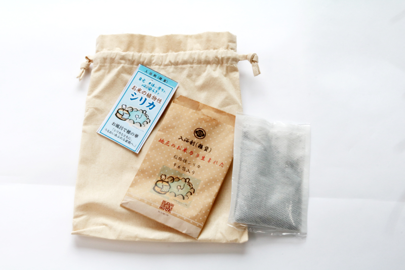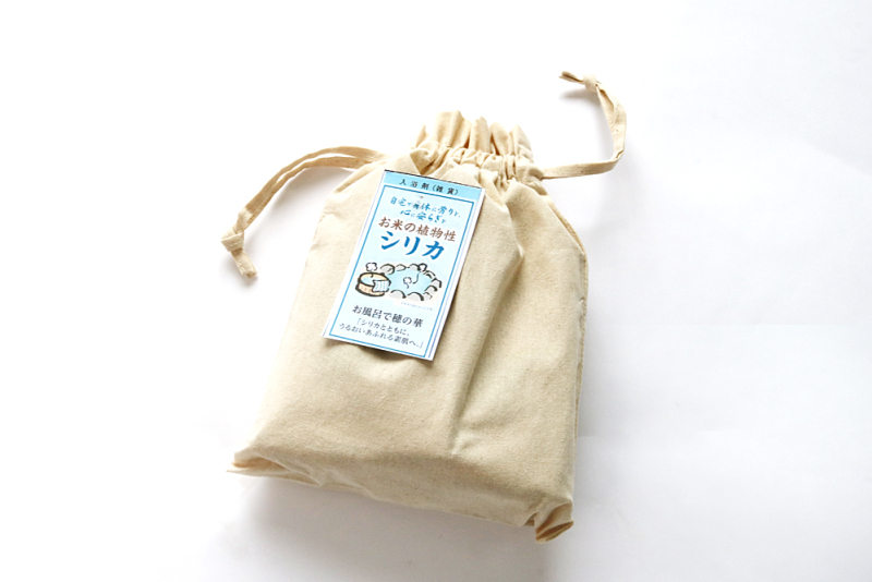 お米のもみ殻から抽出した天然植物性シリカを、不織布に包んだシンプルな入浴パックです。 湯船に入れてやさしく揉むと、シリカが少しずつお湯に溶け出して、角質層まで浸透。全身をやわらかく包み込み、1日の疲れをそっとほどきます。